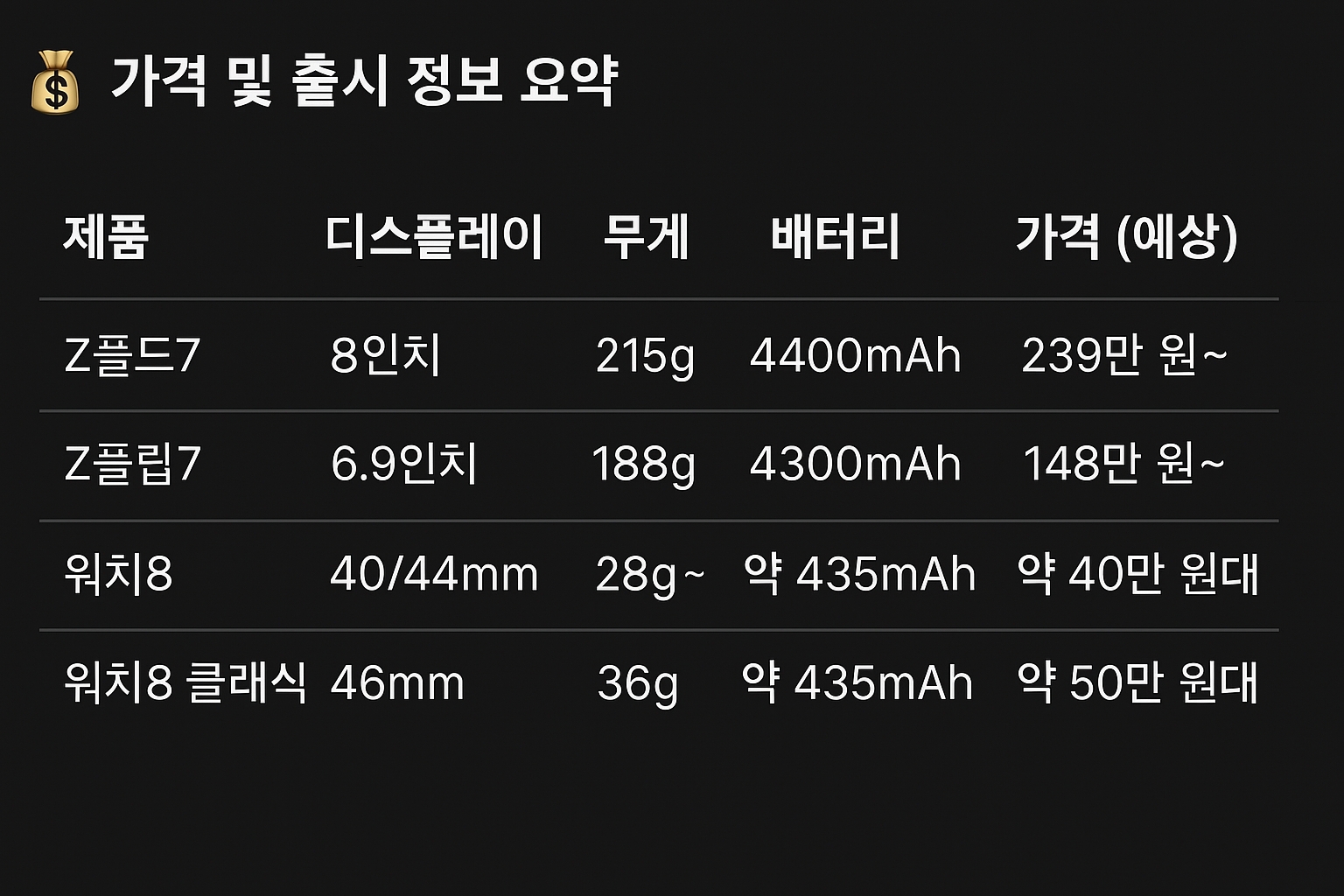 2025년 7월 삼성 언팩 행사를 통해 갤럭시 Z폴드 7, Z플립 7, 그리고 갤럭시 워치 8 시리즈가 공식 공개되었습니다.