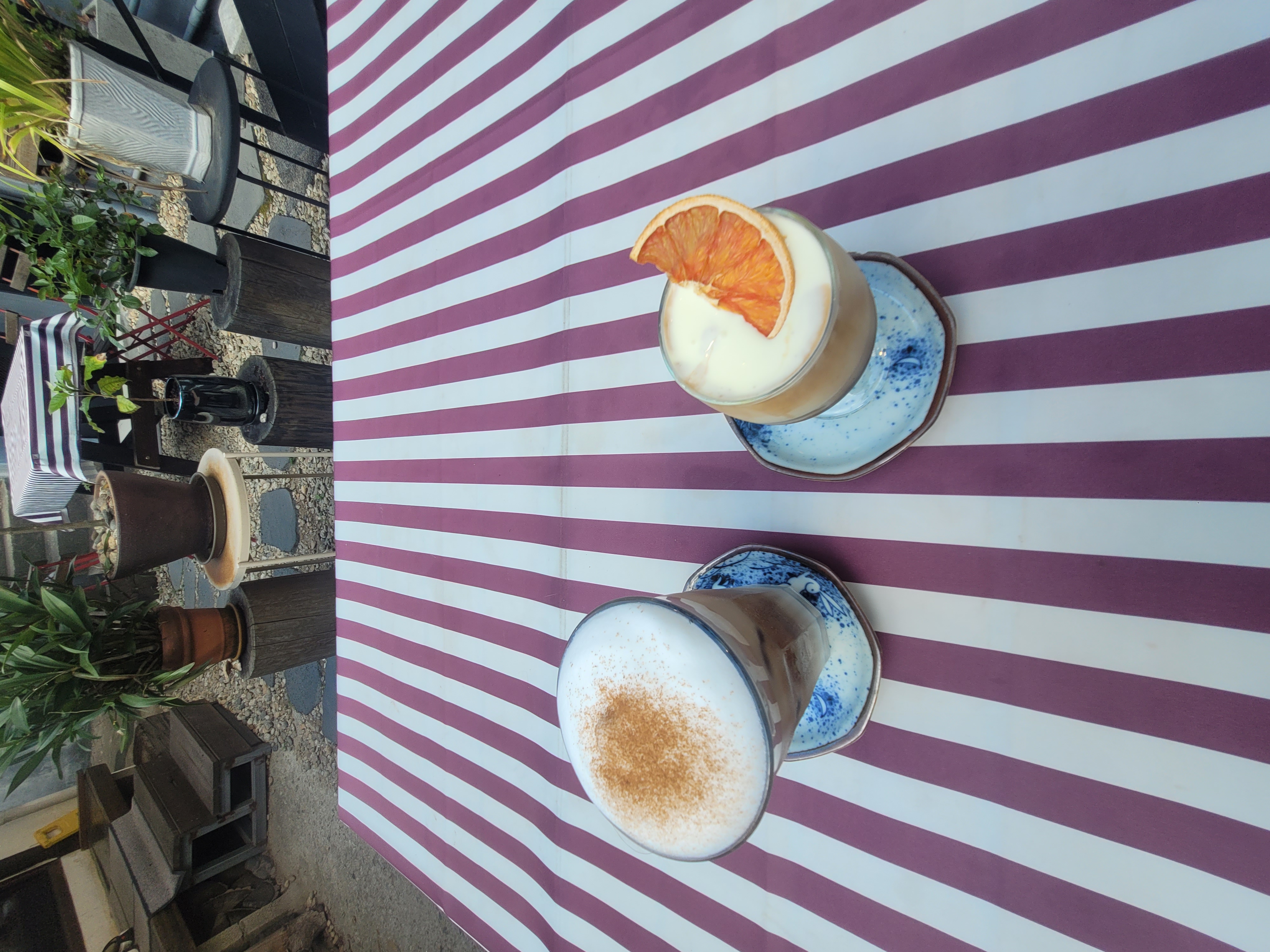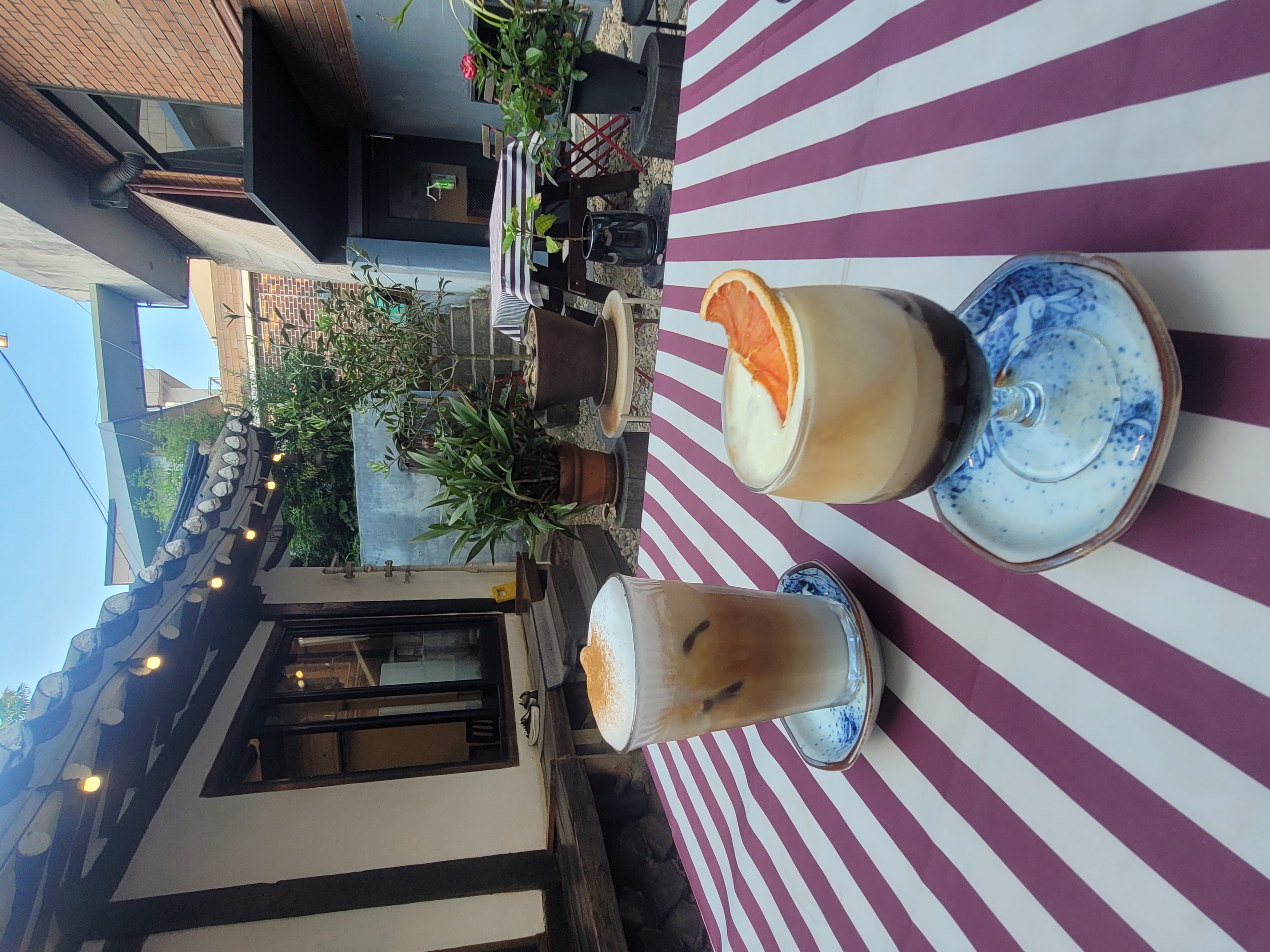 붉은 스트라이프 테이블보가 돋보이는 야외 좌석은 사진을 찍기에도 매우 좋아, 감성카페를 찾는 이들에게 인기 있는 포토존이 되곤 하죠.