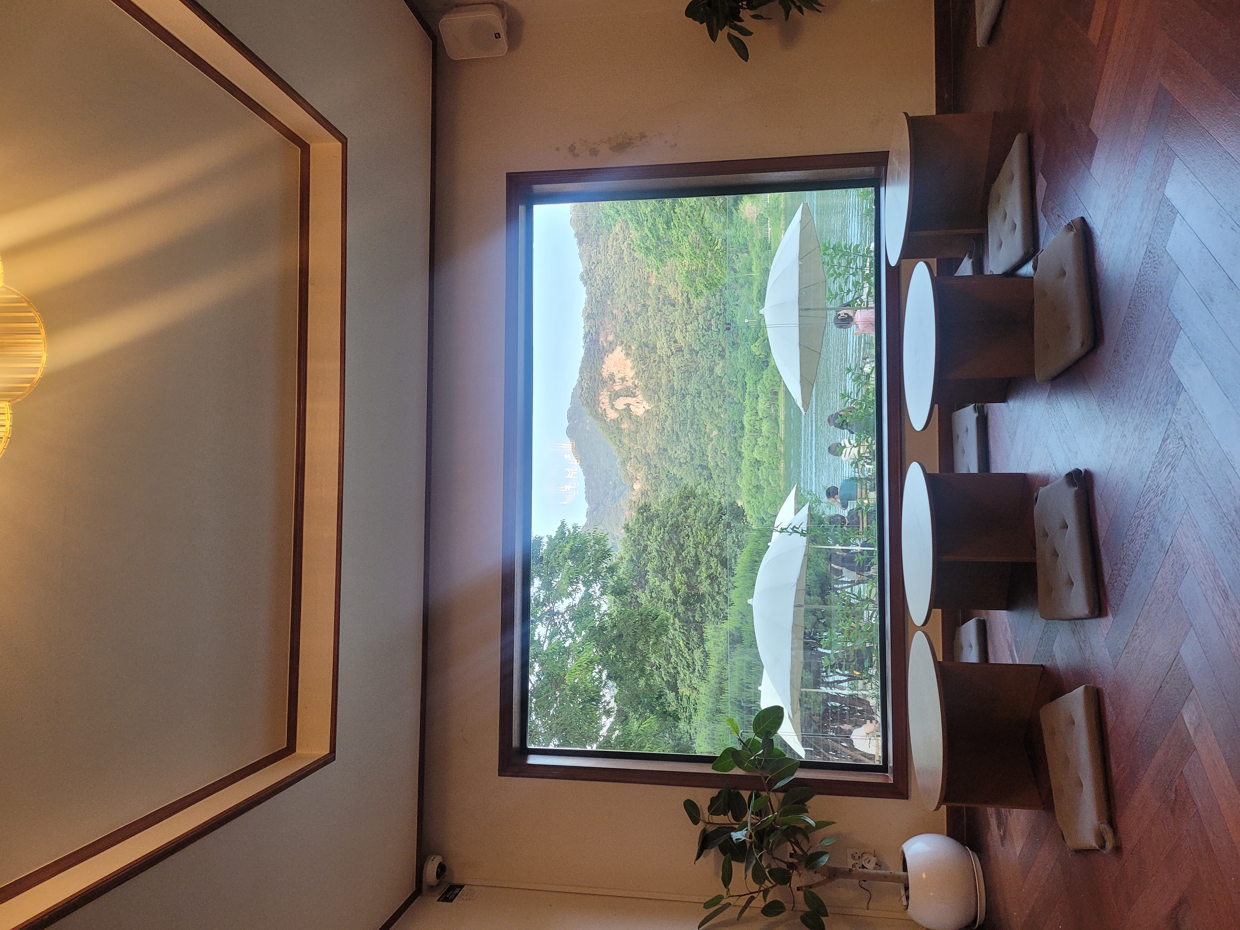 과하지 않은 미니멀한 인테리어에 북한강이 보이는 통유리창이 더해져,