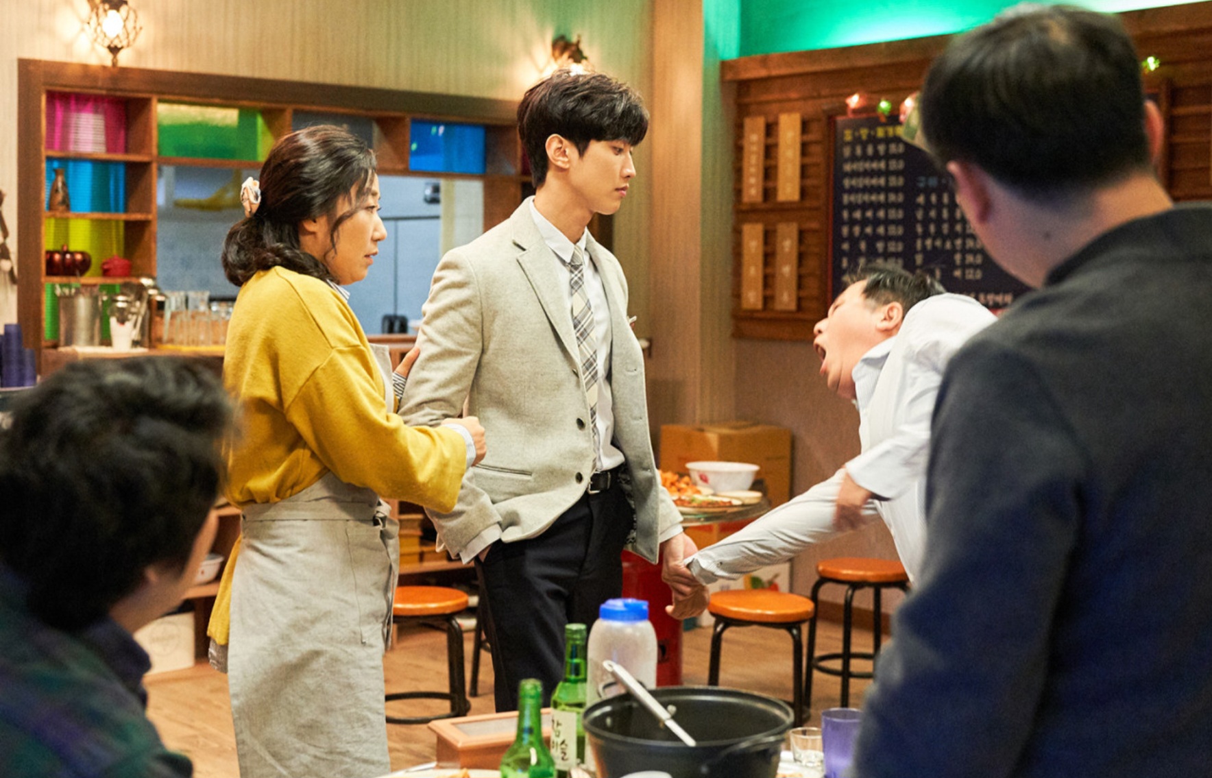 엘리트 조폭 판수(박성웅)와 평범한 고등학생 동현(진영). 전혀 접점이 없던 두 사람이 한순간의 사고로 몸이 바뀌면서 이야기는 본격적으로 전개된다. 옥상에서 떨어진 동현이 판수 위로 떨어지며 벌어지는 이 기묘한 사건은, 흔한 ‘체인지 소재’처럼 보이지만 전개 방식은 꽤나 신선하다.