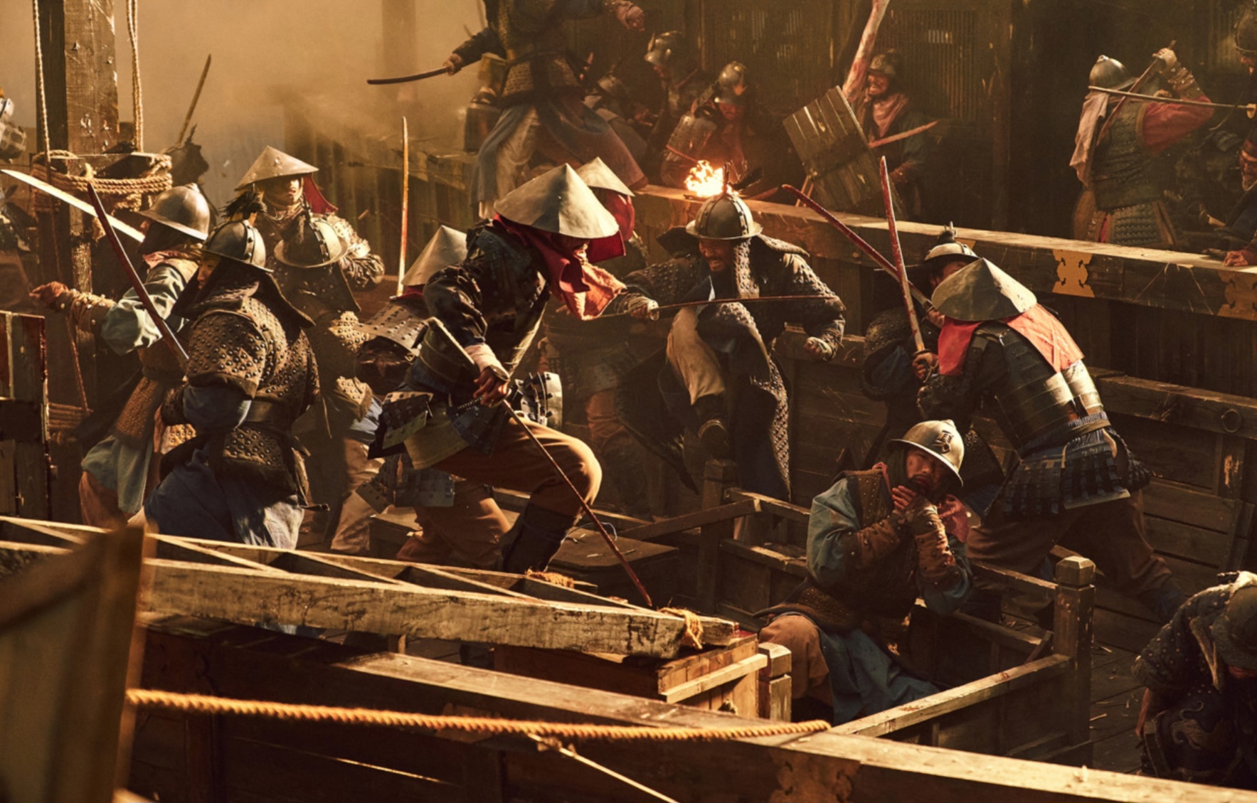 <노량: 죽음의 바다>의 클라이맥스는 역시 ‘노량해전’입니다. 좁은 물길에서 벌어지는 고속 해전, 불길 속에서도 전진하는 조선 수군의 전선들, 그리고 파도 위에서 뒤엉키는 포연의 연출은 시각적 쾌감과 긴장감을 동시에 제공합니다.