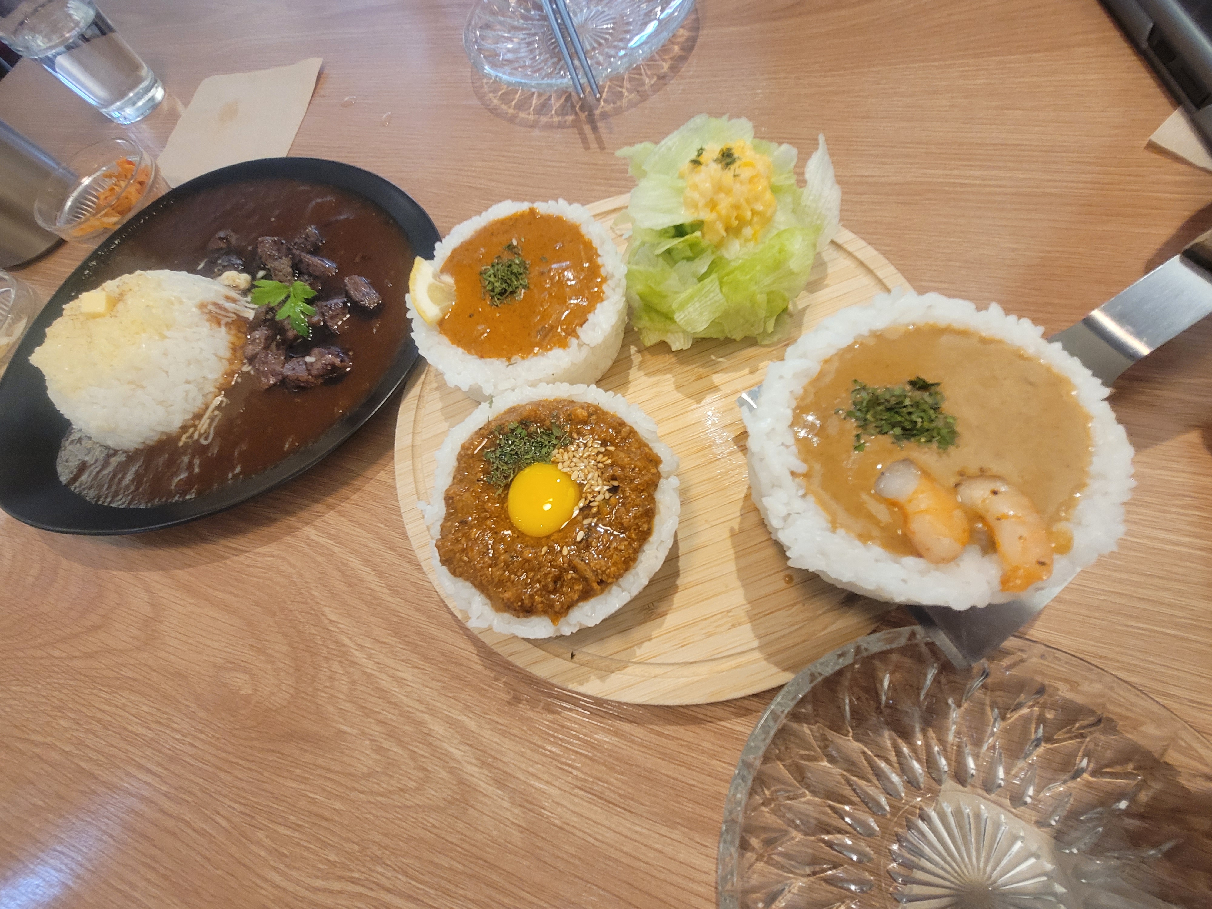 마지막은 키마(돼지고기) 계란 노른자가 올라간 고기 베이스의 카레로, 고소하고 짭짤한 맛이 입에 착 붙더라고요.