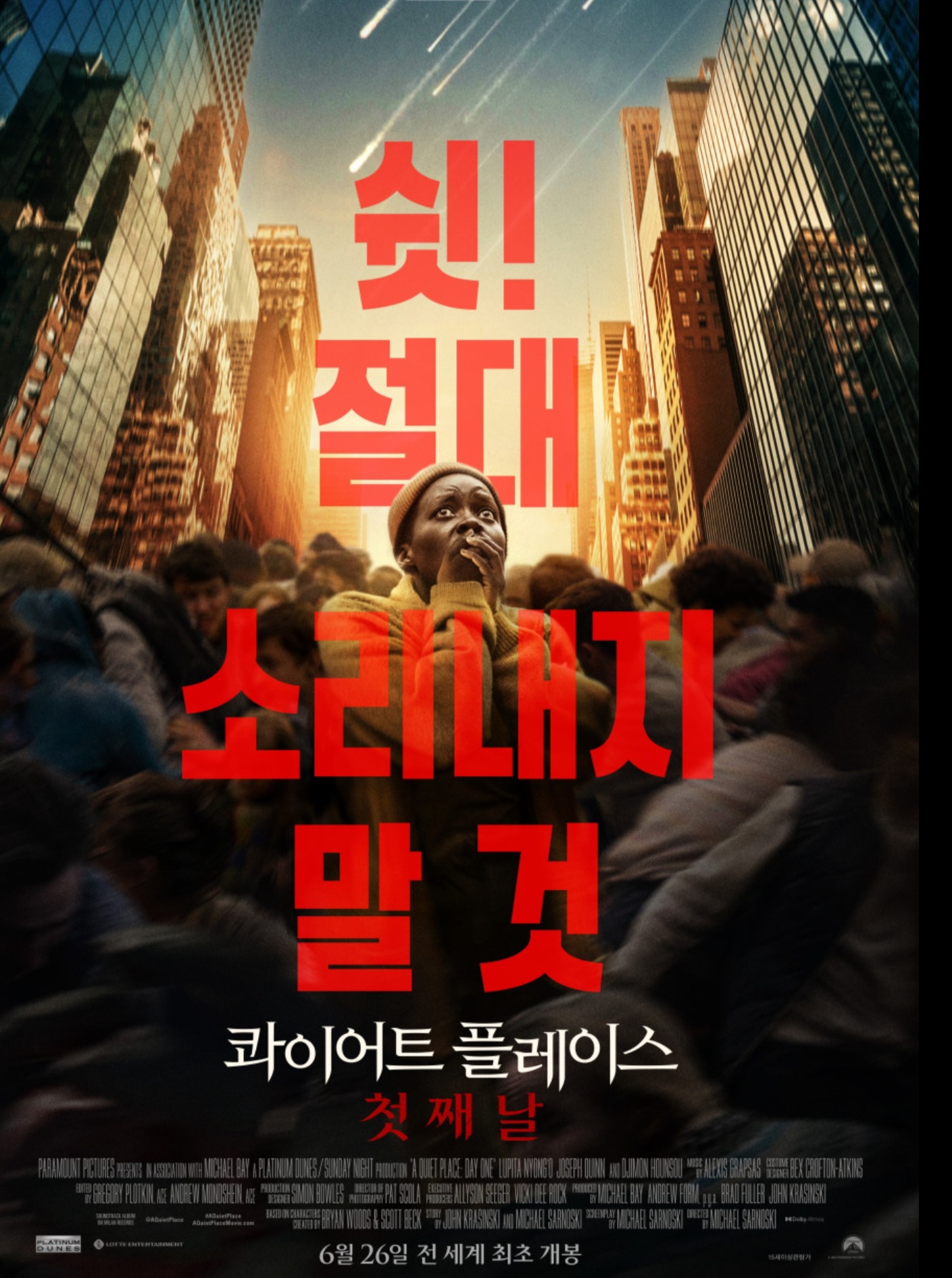 「콰이어트 플레이스: 첫째 날」은 공포의 시작을 통해, 침묵 속에서 드러나는 인간의 본능과 연대를 가장 강렬하게 체험하게 만드는 작품이다.