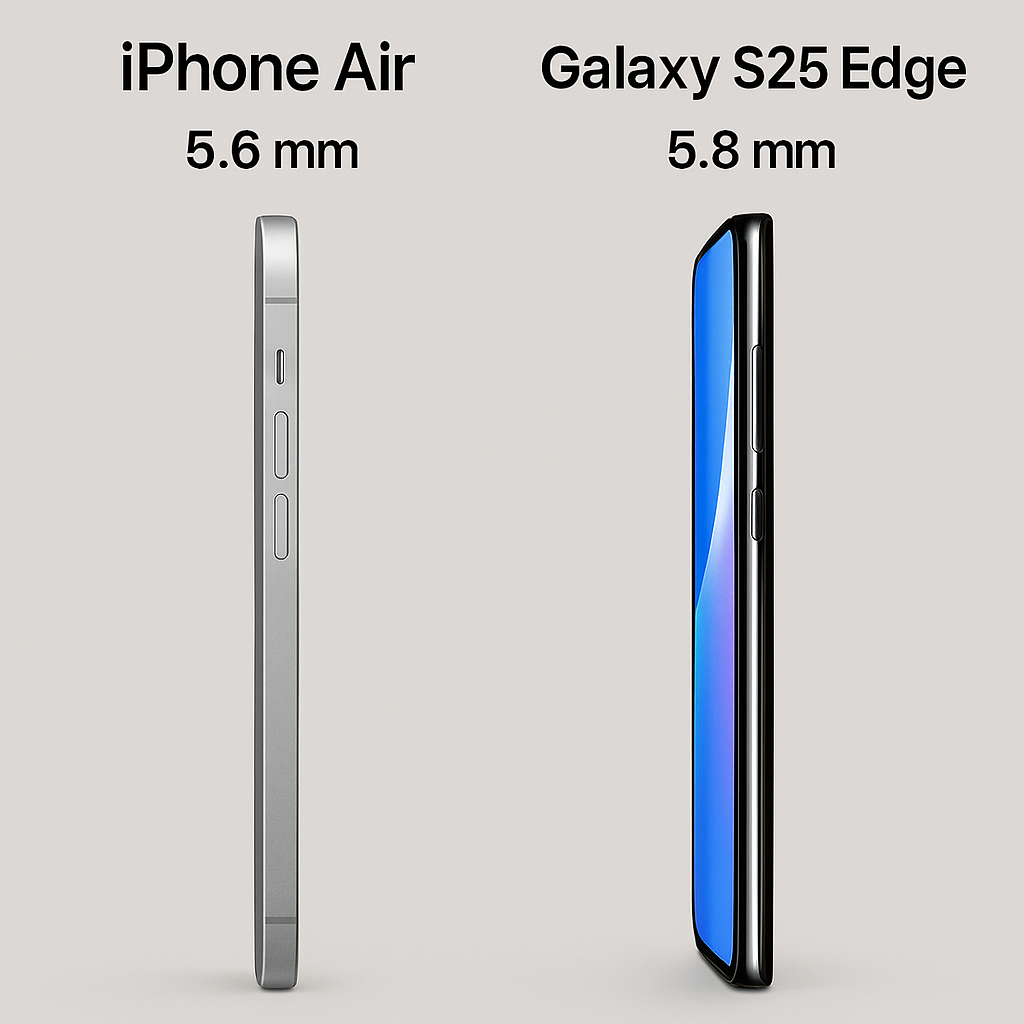 아이폰 에어의 가장 큰 특징은 두께 5.6㎜의 초슬림 디자인입니다. 특히 삼성의 최신 스마트폰 갤럭시 S25 엣지(5.8㎜)보다도 얇아, 현존하는 플래그십 스마트폰 중 가장 슬림한 모델이라는 점에서 주목받고 있습니다.