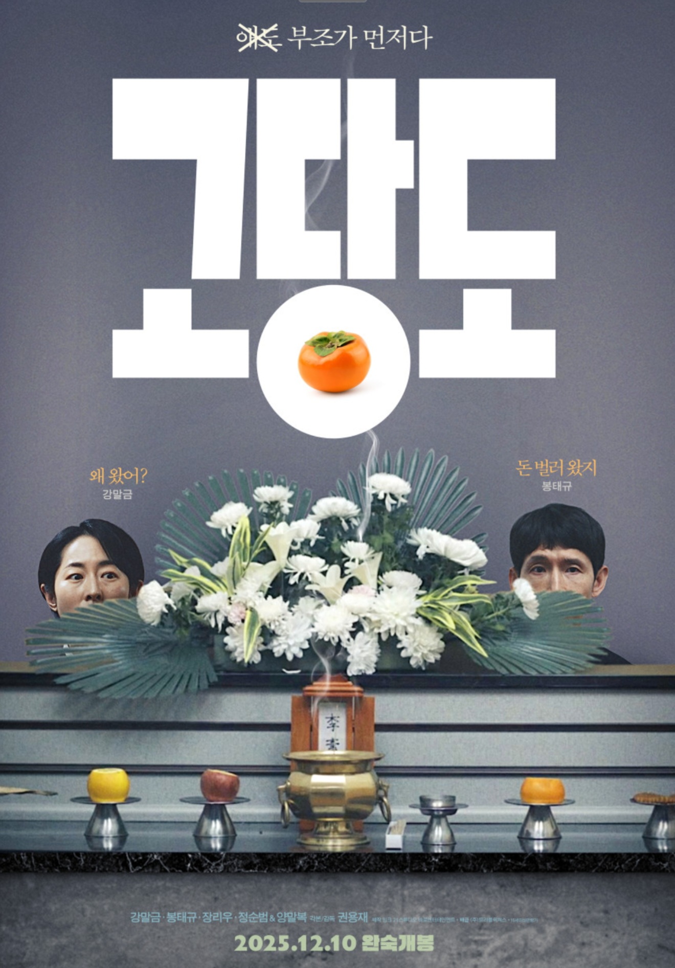 이 장면은 영화 고당도의 핵심적인 블랙 코미디 요소를 보여주는 부분입니다. 웃음이 나올 만큼 황당한 상황이지만, 그 안에는 한국 사회에서 흔히 마주하는 경제적 압박과 가족 책임이라는 현실적인 문제가 담겨 있습니다.