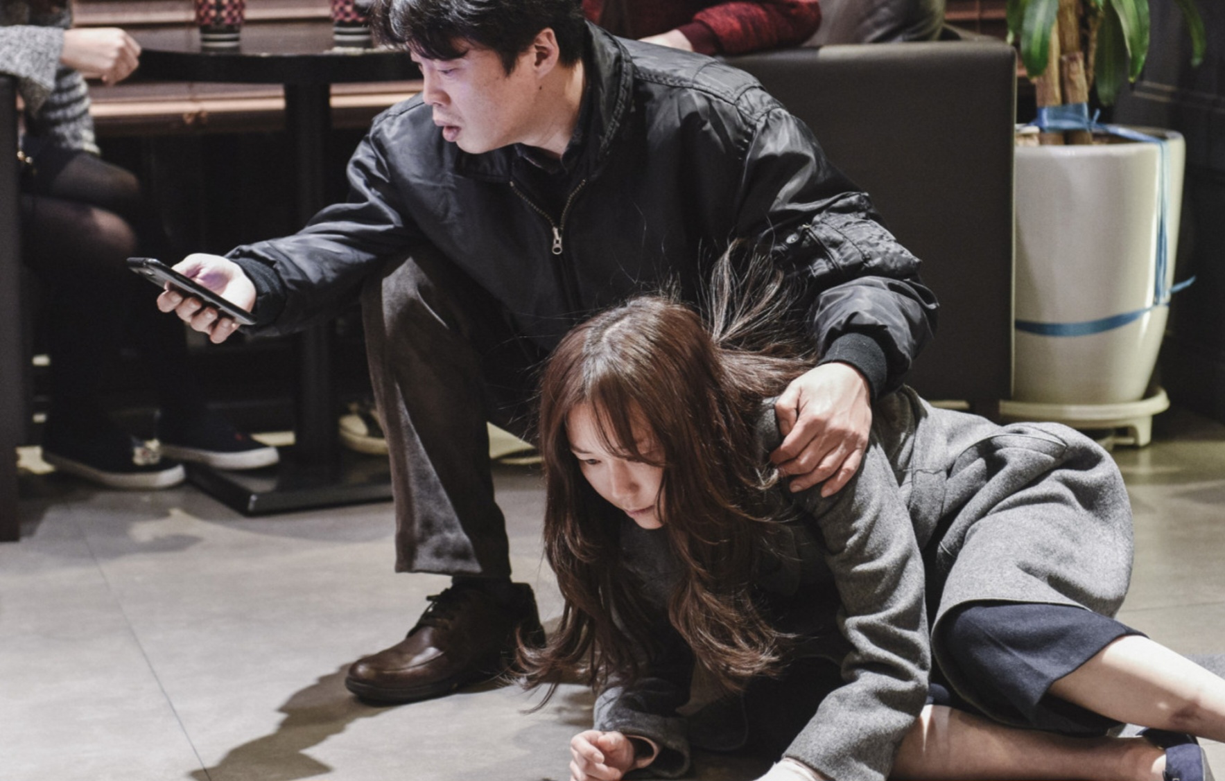 서린은 잠시 커피를 마신 뒤 기억이 끊긴 밤을 떠올리며 공포에 휩싸인다. 그리고 곧 자신이 감시당하고 있음을 깨닫는다. 영화는 초반부터 현실감 있는 사이버 스토킹의 전조를 보여주며, 관객의 불안을 자극한다. 서린은 도움을 청하기 위해 전직 형사 국철(김희원)을 찾아가고, 두 사람은 오래전 ‘한 사건’으로 엮여 있던 관계임이 드러난다.
