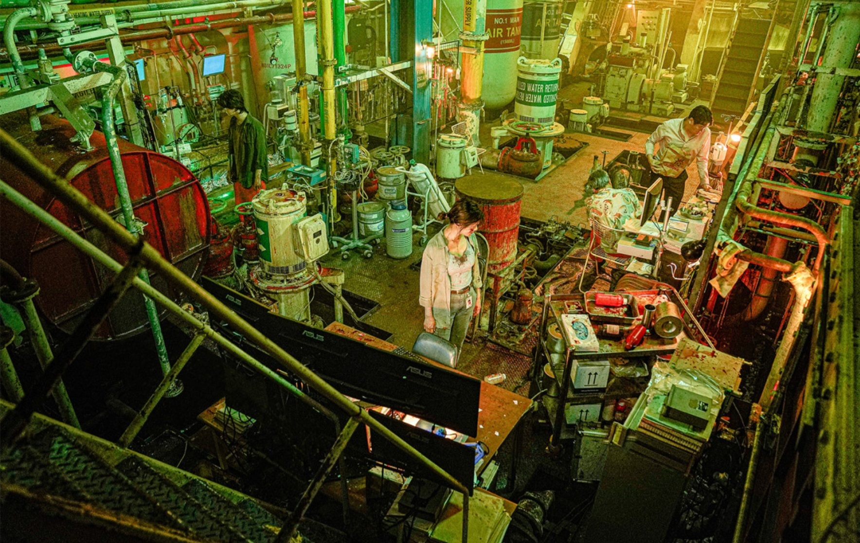 특히 폐쇄된 선박의 구조는 이 영화의 긴장을 극대화시키는 핵심 장치다. 좁은 통로, 복잡한 구조, 수많은 잠금문들은 ‘도망칠 수 없는 감옥’이라는 이미지를 만들어내며, 아무리 뛰어난 인물이라도 이 곳에서 마음대로 움직일 수 없다는 사실을 부각시킨다. 이러한 설정은 이후 벌어지는 사건들을 더욱 압도적으로 만든다.