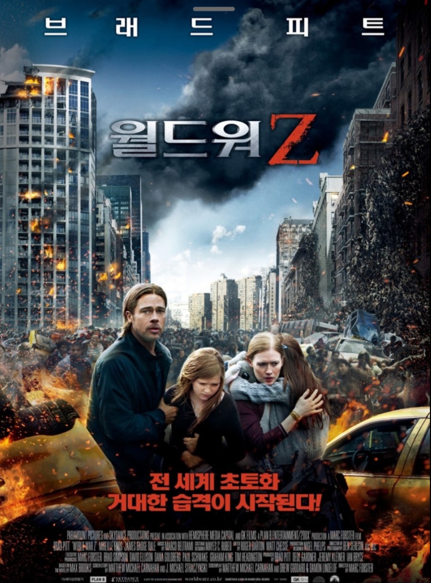 전 세계를 덮친 정체불명의 습격, 그리고 살아남기 위한 필사의 사투. 영화 《월드워 Z》는 좀비물의 틀을 넘어, 글로벌 재난 스릴러로서 인류의 생존을 둘러싼 극한의 긴장감을 선사합니다. 전직 군인이자 UN 조사관으로서 전장을 누비던 제리(브래드 피트)는 전 세계적인 위협 속에서 마지막 희망이자 인류의 구원자로 떠오르게 됩니다.
