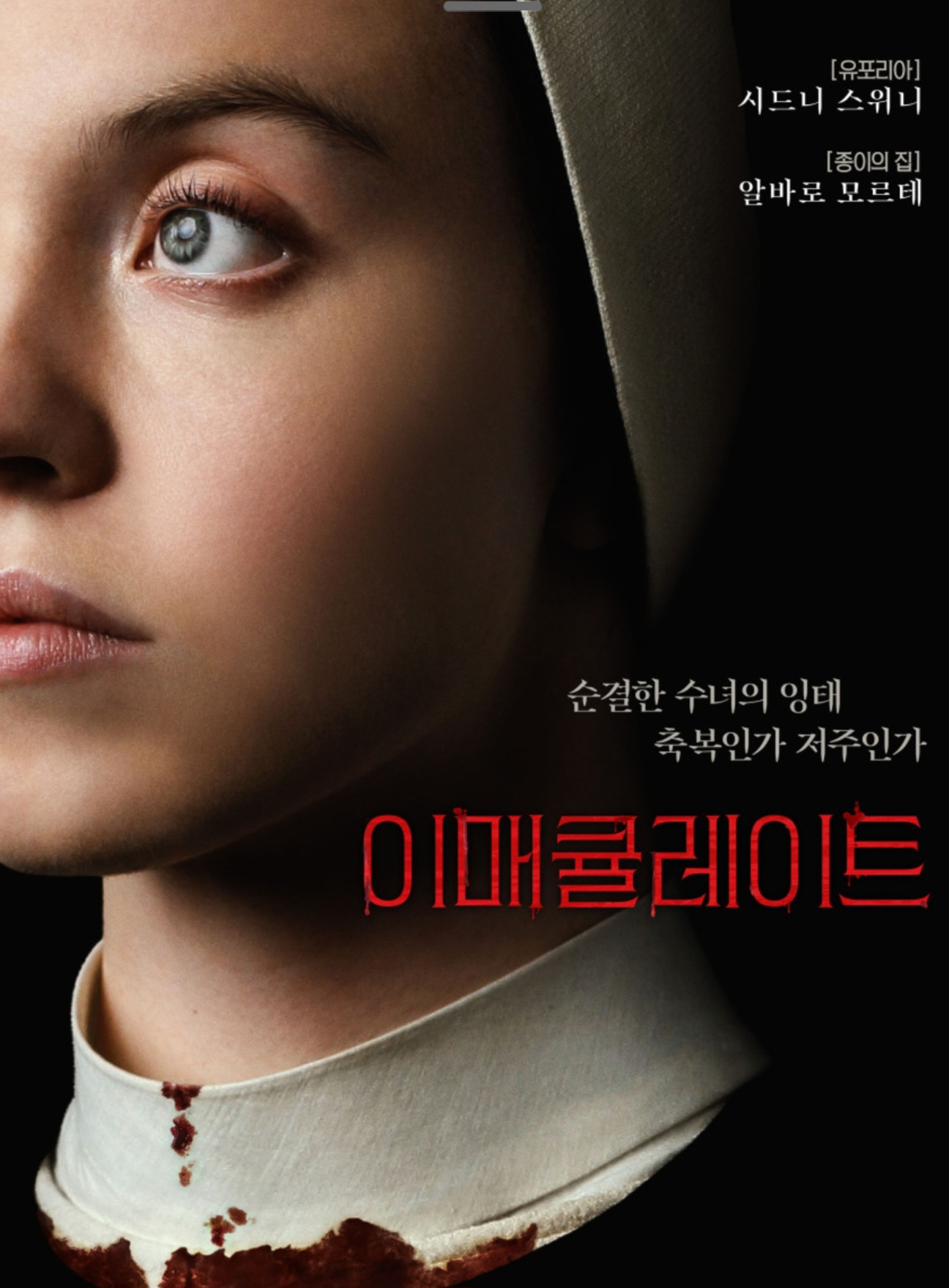 이 영화의 가장 큰 매력은 단연 주연을 맡은 시드니 스위니의 연기력입니다. 그녀는 신앙심 깊은 수녀의 순수함과, 임신이라는 기적을 마주했을 때의 혼란, 그리고 점차 드러나는 수녀원의 어두운 진실 속에서 공포에 휩싸이는 인간적인 모습을 섬세하게 표현해냅니다.