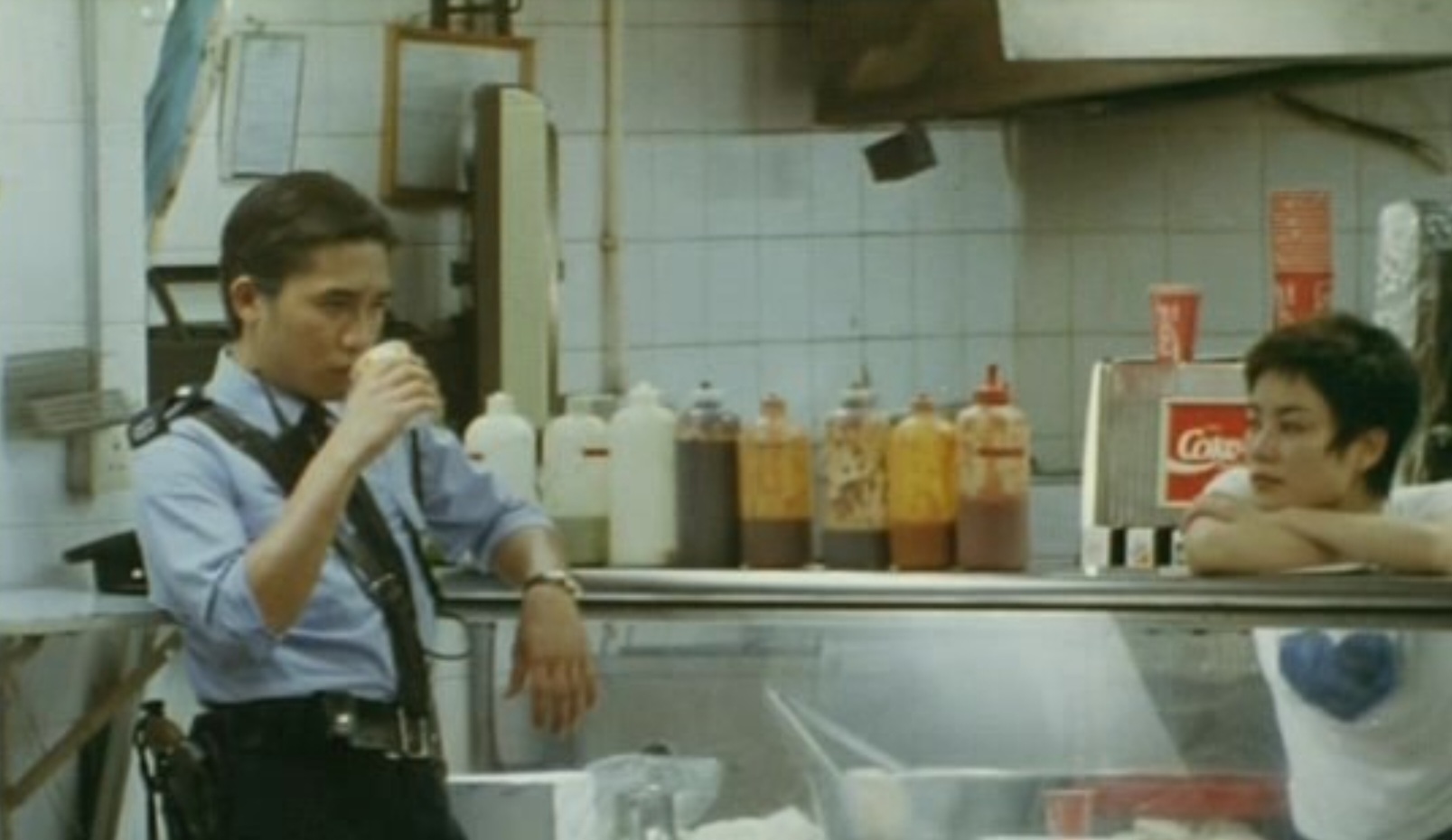 두 번째 이야기는 경찰 663호(양조위 분)와 카페 점원 왕페이(왕페이 분)의 이야기입니다. 연인에게 이별을 통보받고 무기력해진 663호는 매일 같은 시간 같은 장소에서 커피를 사 마시며 일상을 버팁니다. 그를 멀리서 지켜보던 왕페이는 점차 그에게 호감을 느끼게 되고, 몰래 그의 집을 청소하며 감정을 키워갑니다. 이 설정은 다소 환상적이지만, 그녀의 순수한 마음과 혼란스러운 도시의 정서가 절묘하게 어우러져 깊은 여운을 남깁니다.