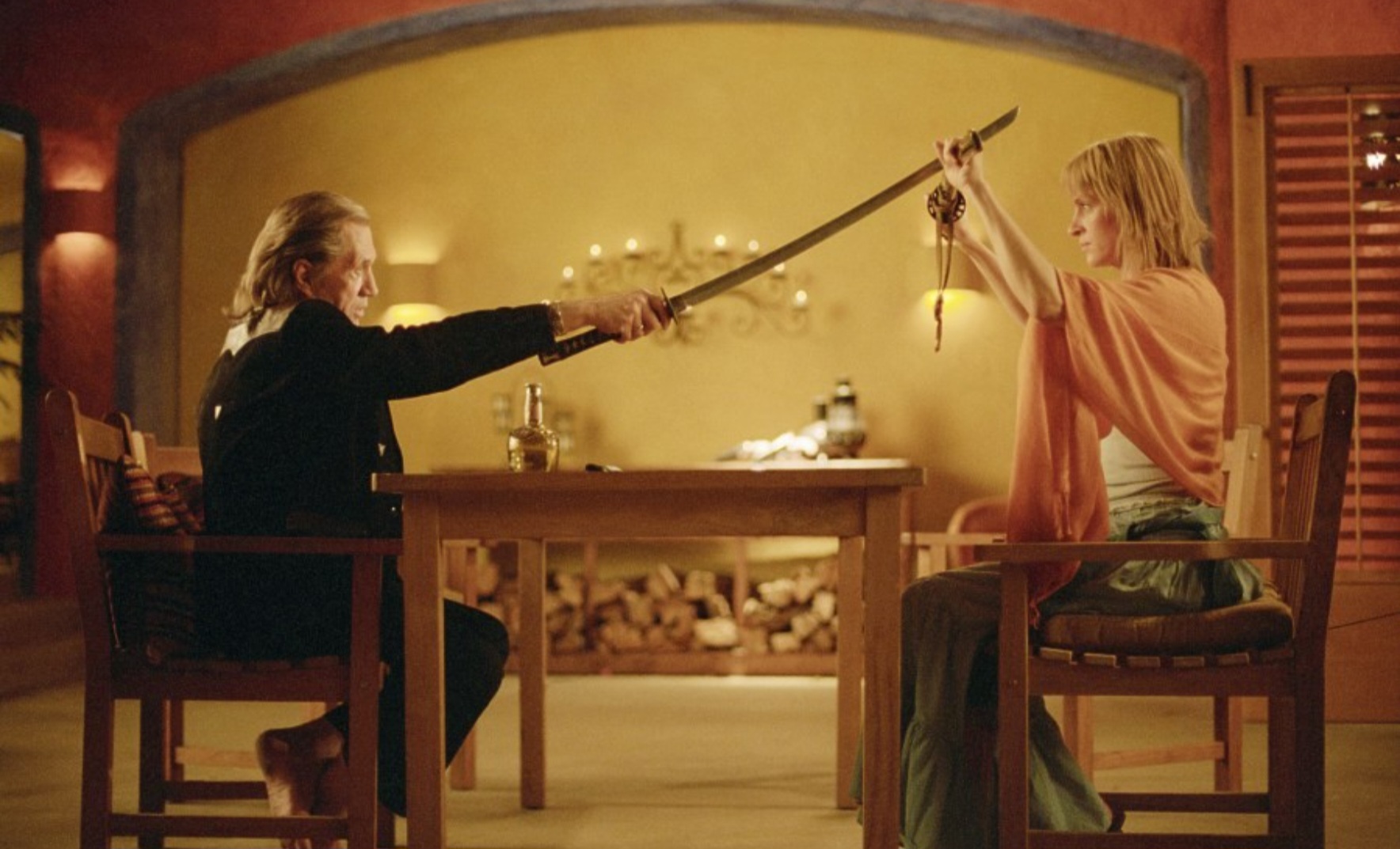 《킬 빌 2》의 진짜 하이라이트는 단연 빌과 더 브라이드의 재회입니다.