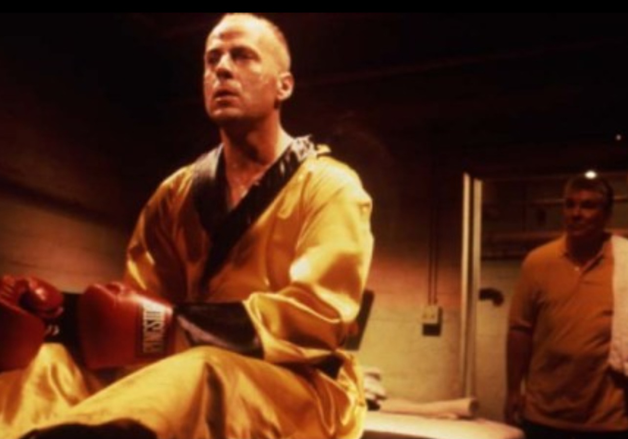 복서 부치의 이야기는 영화의 또 다른 축이다. 그는 돈을 받고 일부러 져 주라는 제안을 배신하고, 결국 상대 선수를 죽음에 이르게 한 뒤 도망자가 된다. 이 선택은 위험하지만, 동시에 자존심과 과거의 기억(아버지와 시계)이 얽힌 필연적인 결정처럼 보인다.