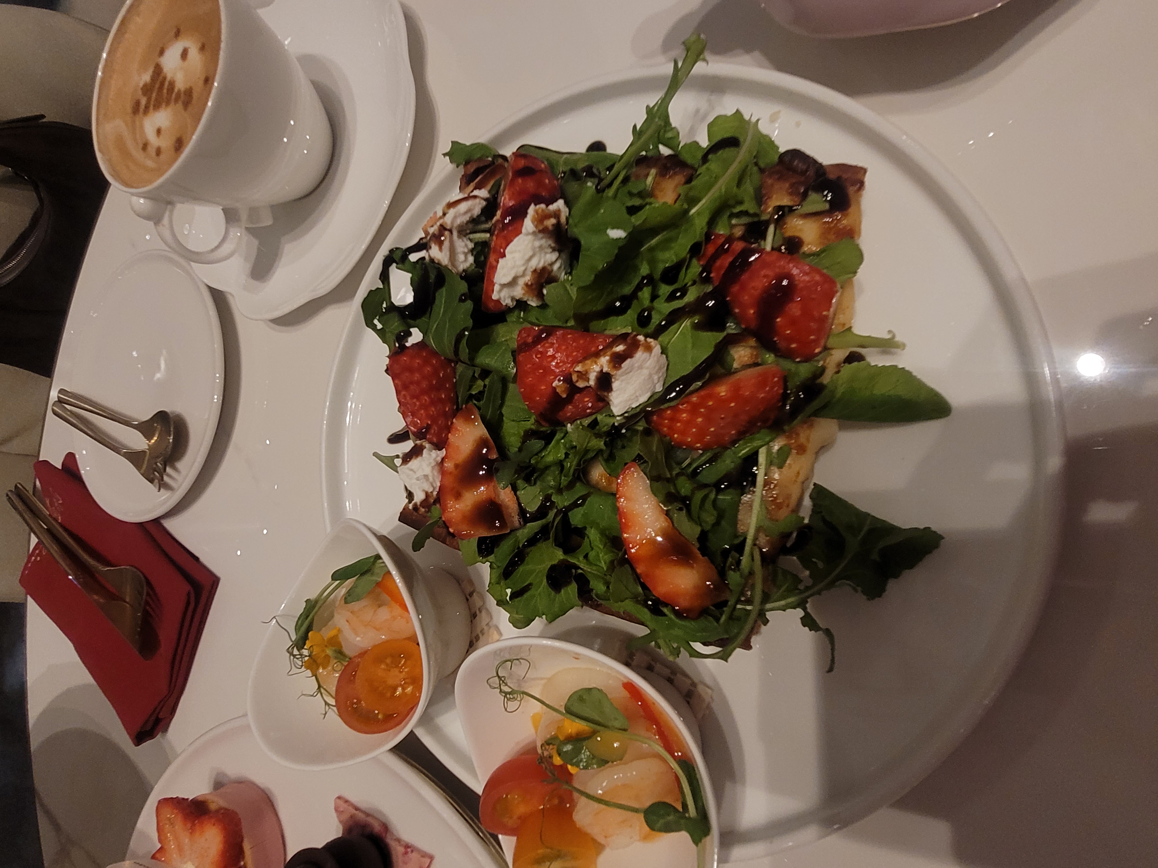달콤한 디저트만 계속 먹다 보면 쉽게 물릴 수 있는데, 중간중간 샐러드를 먹으니 확실히 균형이 잘 맞았어요. 이런 구성이 있어서 마지막 디저트까지 질리지 않고 천천히 즐길 수 있었고, 워커힐 딸기 애프터눈티의 완성도를 더 높여주는 느낌이었습니다.