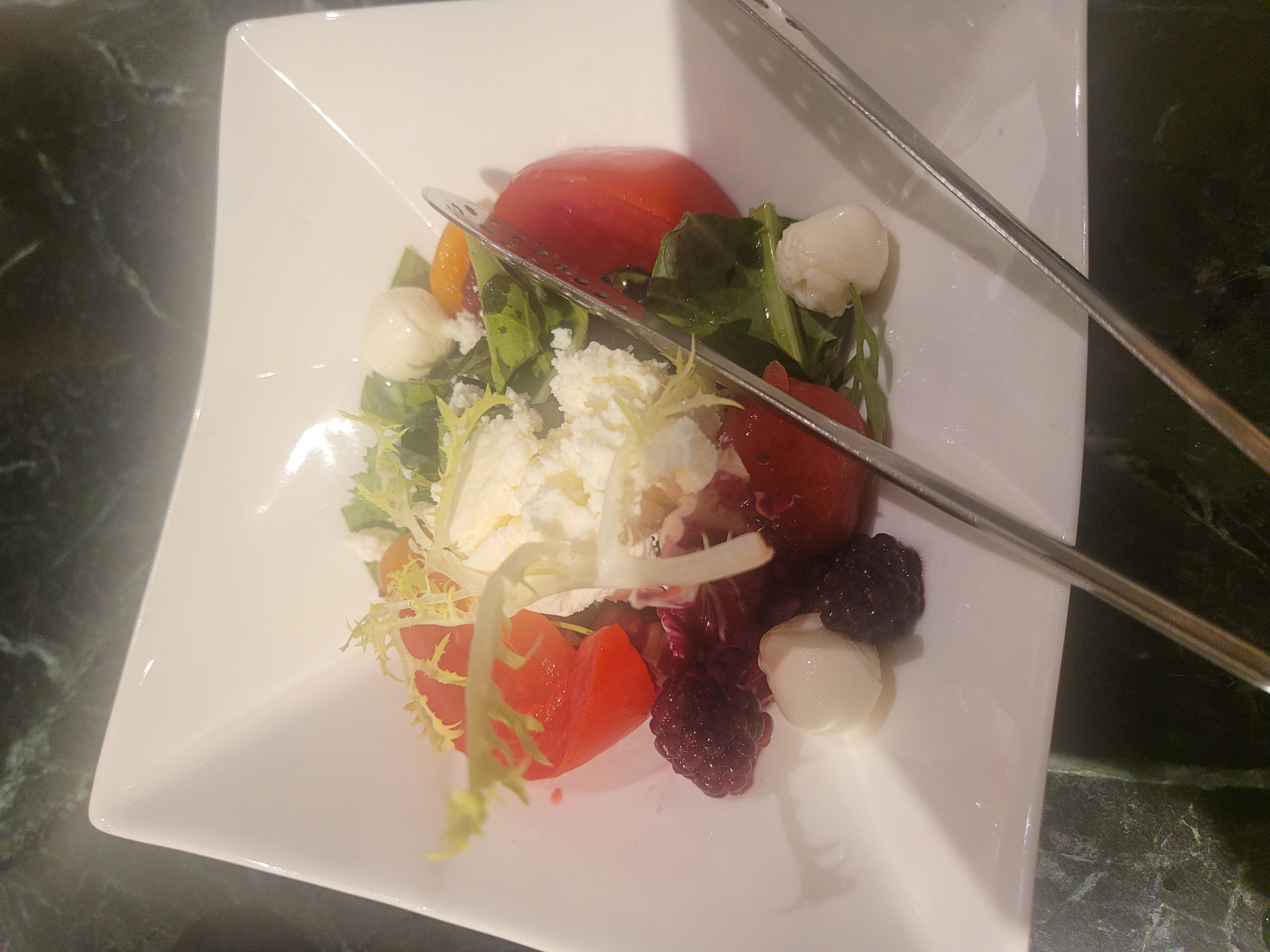 샐러드는 신선한 채소로 구성되어 전체적인 조화가 좋았어요.